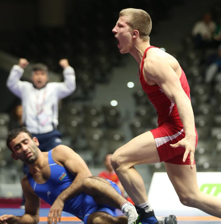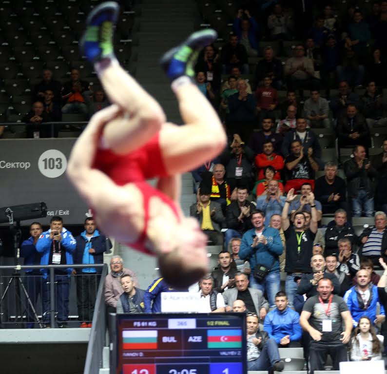Убедителен до финала стигна и другата звезда на първенството Абдулрашид Садулаев. В кат. до 86 кг руснакът, който е двукратен световен шампион за мъже, записа три победи с технически туш, а до момента е дал само една точка на съперниците си. За златото той ще се бори с грузинеца Иракли Мцитури, който на четвъртфиналите победи нашия Евелин Русев с туш.
