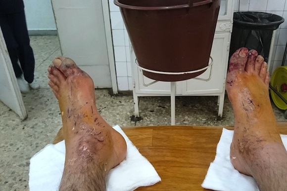 В момента той е в болница в Челмсфорд, Есекс, където продължава лечението на краката му.