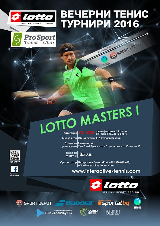 На 11 април започва първият Мастърс турнир за 2016 година на веригата по тенис за аматьори Интерактив тенис. Най-добрите 16 в ранглистата след първите 5 състезания за сезона по право се класират за основната схема, а всеки, които се чувства подготвен да отправи предизвикателство към тях може да се запише за участие до събота – 9 април. Освен за престиж, играчите ще се съревновават и за великолепните награди, предоставени от партньорите „Спорт депо“ и Баболат. Финалистите ще спечелят последен модел маратонки Лото, а победителя ще вземе и ваучер на стойност от 100лв за магазините на Баболат. Домакин на събитието ще бъде ТК „Про спорт“ София.