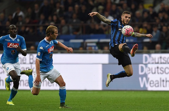 Гостите доминираха в големи периоди от първото полувреме, но получиха два гола в началото и края му. Резултатът беше открит в 4-ата минута, когато Медел изведе Икарди и той технично преодоля Хосе Рейна. Футболистите на Наполи претендираха за засада на аржентинеца и повторенията показаха, че такава има, но реферът зачете гола. Словенският страж имаше още няколко важни намеси, а Жейсон Мурийо се размина само с жълт картон, след като фаулира откъсващия се Габиадини.