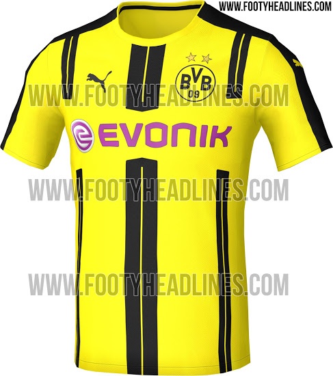 Сайтът Footy Headlines публикува снимка на предполагаемия нов титулярен екип на Борусия (Дортмунд), с който отборът ще играе в Бундеслигата през следващия сезон 2016/17 г. Фланелките отново са в жълто-черно, но в по-различен дизайн от настоящия - с три черни ивици по дължина. Както е по традиция, отборът на Томас Тухел би трябвало да дебютира с него в последното си домакинство за тази кампания, което е на 14 май срещу Кьолн.