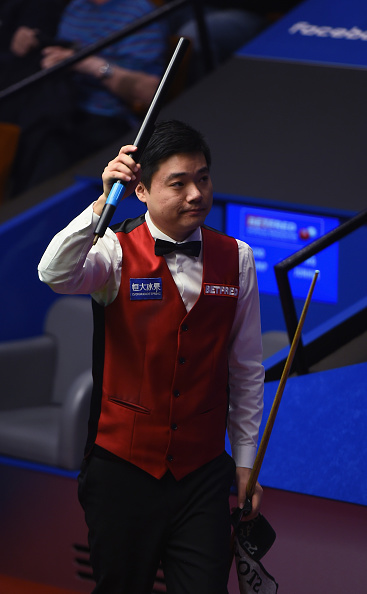 Първата партия от сеанса започна с 65 точки за Дин, но той сгреши червена за среден джоб и Тръмп го наказа със 70 точки за 7:10. В следващата партия китаецът изстреля 72 точки, а малко по-късно и 91 точки 12:7. Преди почивката състезателят от Бристол се отчете с брейк от 61 точки и намали пасива си на 8:12.