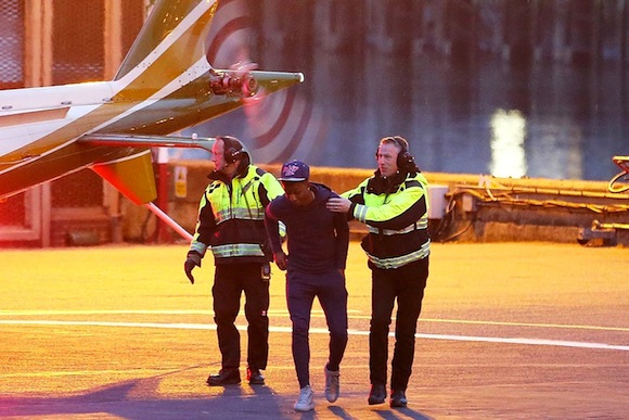 Младата надежда на Лестър Сити Демарай Грей избегна по чудо опасен за живота и здравето му инцидент, след като буквално на сантиметри от ротора на хеликоптер беше издърпан от служител по сигурността на летището.