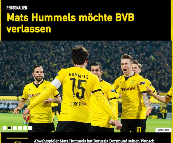 "Хумелс сподели своето желание да ни напусне през лятото, защото иска да подсили конкурента ни Байерн (Мюнхен) - разкриха "жълто-черните". - Ръководството на Борусия е готово да изпълни желанието му при положение че Байерн плати солидна сума, която да отговаря на качествата на футболиста. Засега от Мюнхен не е постъпвала никаква оферта. За всеки случай напомняме, че Матс има договор с Борусия до 30 юни 2017 г. и в него няма откупна клауза".