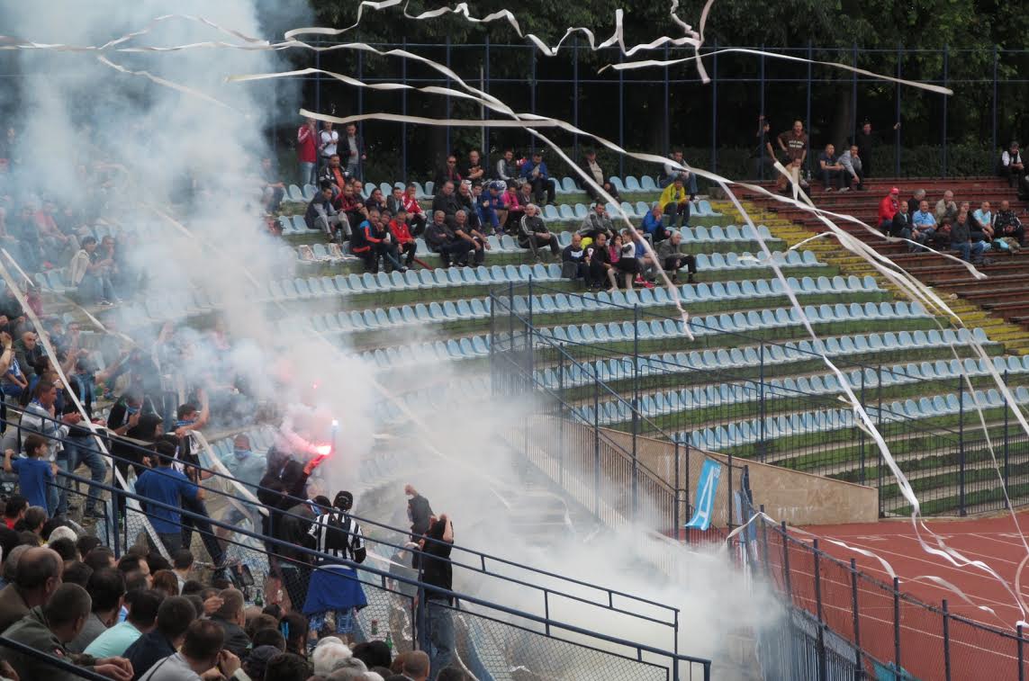 В 25-ата минута пък русенската агитка отброи до 25 и запали първите си факли и димки, последвани от десетки ленти, които полетяха към пистата на Градския стадион в Русе, в чест на края на 25-годишното пребиваване на техните любимци извън футболния елит на България. Броени минути по-късно, в 28-ата мин. Светослав Читаков се измъкна сам срещу противниковия вратар и с точен изстрел в долния десен ъгъл откри за 1:0.