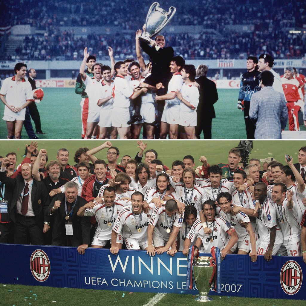 Италианският гранд Милан още страда за загубения финал от Ювентус в Купата на Италия в събота. Поражението от "бианконерите" освен че остави тима пета година без отличие, го изхвърли за трета поредна година от евротурнирите. "Росонерите", които са най-успелият италиански клуб в света със своите 18 международни отличия, сред които 7 трофея от КЕШ/Шампионската лига, на днешната дата честват два от своите най-големи триумфа. Преди девет години в Атина Милан спечели с 2:1 срещу Ливърпул своята последна титла в ШЛ, а през 1990 година във Виена с 1:0 надви Бенфика, за да вдигне за втори пореден път купата с големите уши и общо за четвърти път в историята си. Именно от този ден в Европа няма тим, който да печели купата в две поредни години.