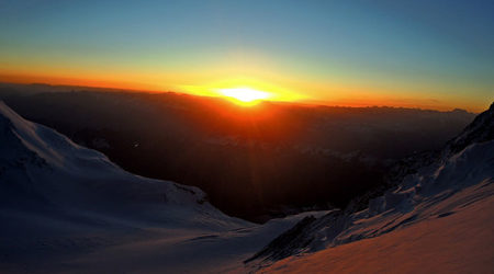 В 2.30 ч. сутринта излязох от палатката. Огромна луна огряваше пътя към върха. Температурата беше само -20 градуса. Бях разделил пътя си на етапи. Първата ми цел беше да стигна до Лагер 4. Това е около 1 км траверс с набиране на по-малко от 150 метра денивелация. Осветен от луната изминах разстоянието за малко повече от час. Видях една стара, изоставена палатка и се мушнах в нея за кратка почивка. Като излязох след петнайсетина минути, хоризонтът беше станал оранжев - денят започваше в 4.30 ч.