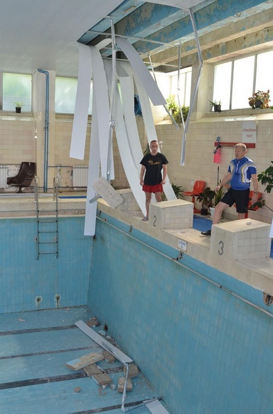 "За 5 секунди 4 момиченца се разминаха с падащите късове от тавана", обясни Огнянов. Той е треньор към Ученическа спортна школа, която стопанисва самия басейн. За щастие децата се разминали само с уплаха.