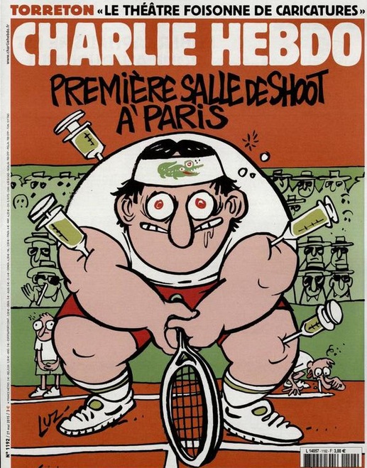 Френският сатиричен вестник "Шарли Ебдо" отново влезе в полезрението на всички с карикатура на челната си страница. Изданието е избрало за последния си брой изображение на тенисист, а забитите инжекции отново връщат към вечната тема за допинга в спорта.