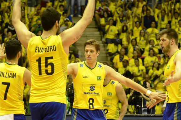 БРАЗИЛИЯ: Едер Карбонера 9, Уилям Аржона 1, Мурильо Ендрес 12, Евандро Гера 19, Луис Фелипе Фонтелеш 16, Лукаш Сааткамп 5 - Серджо Сантош-либеро (Уолъс Де Соуса, Рафаел Де Оливейра, Лукаш Лох, Риад Рибейро 6)