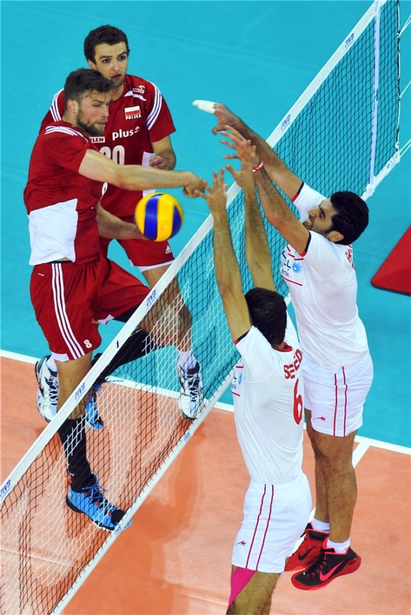 Домакините от Полша тръгнаха силно и в третия гейм и постепенно поведоха с 13:9 след фантастични сервиси на Матеуш Биениек и Бартош Курек. Младият Биениек продължи да играе невероятно добре в атака и на блокада, а Полша спечели гейма с убедителното 25:16. Напрежението си каза думата в четвъртата част като Михал Кубяк и Сейед Мохамад Мусави получиха червени картони. В същото време Иран намери начин как да спре Биениек и Курек и взе лека преднина при 16:14. Разликата стана 21:18, след което воденият от Слободан Ковач тим спечели с 25:22 след мощна атака на Шахрам Махмуди, с което вкара мача в тайбрек. Волейболистите на Полша бързо поведоха в петия решителен гейм с 8:2, след което подкрепяни от феновете си без проблеми спечелиха тайбрека с 15:6, а с това и мача с 3:2.