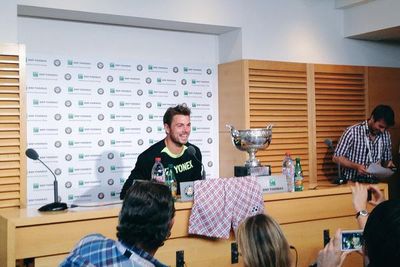 Новият шампион на "Ролан Гарос" Стан Вавринка демонстрира чувство за хумор на пресконференцията след триумфа си във финала на турнира срещу Новак Джокович. Швейцарецът свали предизвикалите множество полемики гащета на розови шарки и ги постави на масата пред себе си редом до купата.