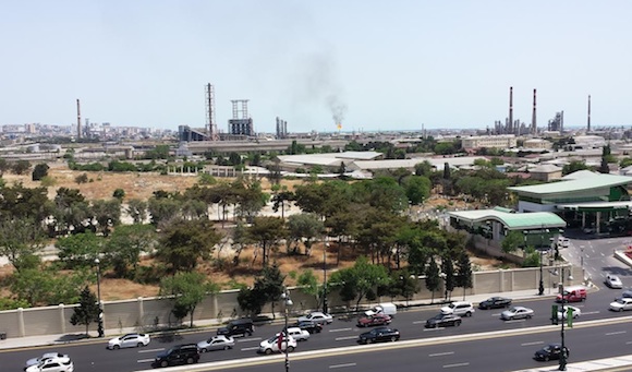 С гледка към огромни горящи огньове на петролни рафинерии са стаите на българите в селото на спортистите на европейските игри в Баку. Зрелището е особено впечатляващо нощем, когато озарява огромна част от небосклона, а специфичната миризма на изгорен петрол се усеща в голяма част от града. Нефтът е една от причините Азербайджан да организира европейските игри, тъй като осигурява възможността да се покрият немалките разходи на организаторите.