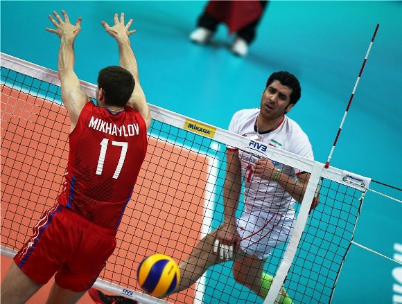 Благодарение на добрата игра на Артьом Волвич, Денис Бирюков и разпределителя Игор Колодинский домакините спечелиха с относителна лекота първия гейм с 25:20. Но "персите" показаха страхотна игра във втората част и след почти брилянтните изяви на Мир Саеид Маруфлакрани и влезлия като резерва Моджтаба Мирзаджанпур изравниха на 1:1 след 25:16. Третият гейм се превърна в своебразно надстрелване между Бирюков и Максим Михайлов от една страна и Милад Ебадипур от друга. Все пак Иран допусна по-малко грешки и поведе с 2:1 след 25:19. Иранците дръпнаха и в четвъртата част с 8:2 чрез Мирзаджанпур, но руснаците показаха страхотен характер и стопиха разликата до една точка. В крайна сметка Иран успя да спечели гейма с 25:23, а с това и мача с 3:1.