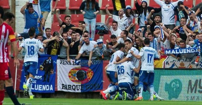 Мачовете за влизане в елита на Испания за пореден път доказаха, че са сред най-инфарктните и непредсказуемите. Отборът на Жирона, който преди три дни спечели с 3:0 като гост на Сарагоса, днес загуби у дома с 1:4 от арагонския си съперник и шокиращо беше елиминиран. "Бяло-сините" се добраха до историческия обрат и ще играят финален плейоф за влизане в Ла Лига срещу тима на Лас Палмас.