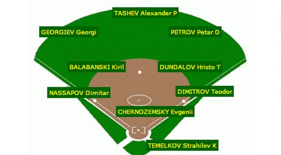 Александър Ташев и Димитър Насъпов батираха 2 от 4 и заслужиха по 2 RBI, а по 1 точка вкараха Крум Темелков и Теодор Димитров. Останалите български рънери стигнаха обратно до хоума при недоразумения в гръцката защита. В продължение на 7 ининга тя бе предвождана от питчера Александрос Гунарис (L 0-1), който пое 8 точки след 9 хита и 6 разходки.