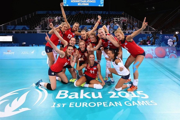 Щастливите хърватки с обща снимка след първата си победа на Игрите в Баку