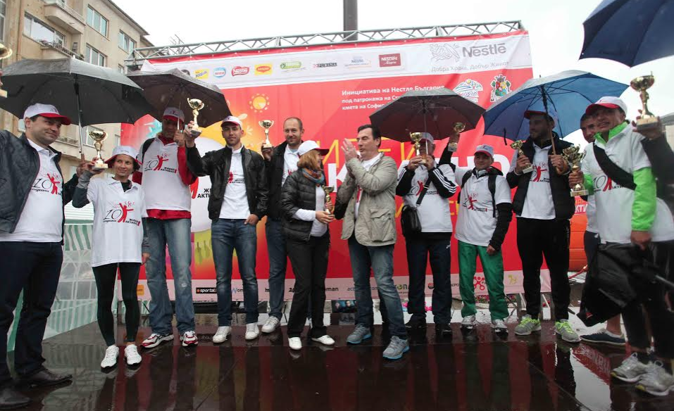 Симона Пейчева, Тереза Маринова, Тити Папазов, Евгени Иванов-Пушката, Петър Попангелов, ректорът на НСА "Васил Левски" проф. Пенчо Гешев, Радка Попова, Симеон Найденов, Красимир Дунев, Иво Ангелов, Стефан Георгиев, Александър Симеонов, Златин Георгиев и много други бяха сред спортистите, които застанаха до изпълнителния директор на Нестле България Хуан Карлос Пералехо, кмета на София Йорданка Фандъкова и заместник-министъра на младежта и спорта Калин Каменов, за да дадат официален старт на 10-тия рожден ден на най-голямата инициатива за балансирано хранене и активен начин на живот. Те поведоха хиляди по столичните булеварди Черни връх и Арсеналски към Южния парк в София, където те се включиха в различни спортни активности и игри за балансирано хранене под дъжда, организирани с помощта на стотици доброволци, подкрепили кампанията и тази година.