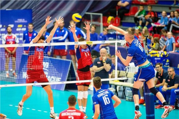 ФРАНЦИЯ: Йоан Жомел 3, Антонен Рузие 10, Кевин Льо Ру 18, Жулиен Линеел 6, Никола Мареша 14, Франк Лафит 7 - Женя Гребенников-либеро (Бенжамен Тонюти 2, Ървин Нгапет 6, Никола Льо Гоф 5)