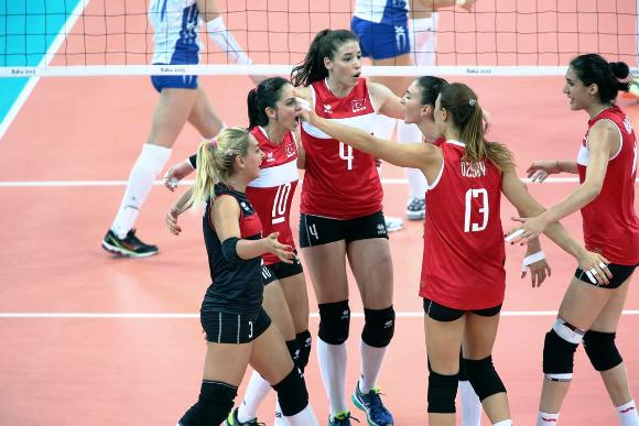 В третия 1/4-финал отборът на Турция успя да надиграе Русия с 3:1 (25:18, 23:25, 25:22, 25:19). Над всички за турския тим бе Гьозде Йълмас със страхотните 23 точки (2 блока, 1 ас и 50% ефективност в атака) за победата. За "Сборная" Дария Исаева също реализира 23 точки. Така на полуфиналите Турция ще спори с домакините от Азербайджан, които биха категорично Холандия с 3:0 (25:21, 25:23, 25:14) в последния 1/4-финал. Най-полезна за азерките отново бе Полина Рахимова с 23 точки (7 блока!!!, 2 аса и 50% ефективност в атака) за успеха. За "лалетата" Лонеке Шьоетжес завърши със 17 точки.