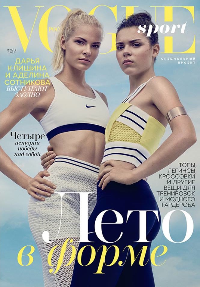 Олимпийската шампионка във фигурното пързялане от Сочи 2014 Аделина Сотникова и носителката на две европейски титли в скока на дължина в зала Даря Клишина се появиха на корицата на руския вариант на модното списание Vogue. Двете спортистки красят юлския брой на изданието.