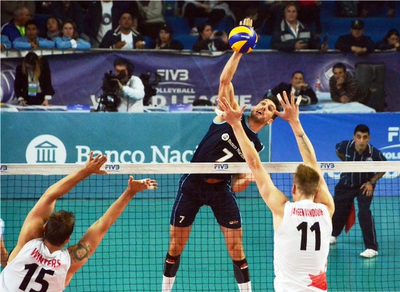Националният волейболен отбор на Аржентина запази шансове за класиране за финалната четворка на втората дивизия на Световната лига, която ще бъде във Варна. "Гаучосите" се наложиха у дома над Канада с 3:1 (25:17, 18:25, 25:14, 25:21) в първия мач помежду им от 5-ия кръг в Група "С", в която е и България, игран рано тази сутрин българско време пред около 3500 зрители в Буенос Айрес.