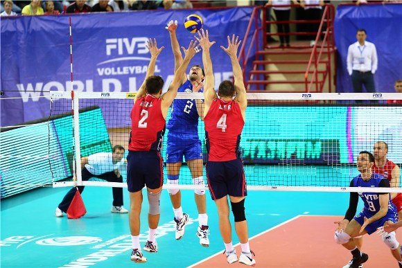 САЩ: Мика Кристенсън 9, Матю Андерсън 18, Аарън Ръсел 12, Тейлър Сандър 9, Максуъл Холт 10, Дейвид Смит 6 - Ерик Шоджи-либеро (Дейвид Лий 5, Томас Джаешке, Ръсел Холмс)