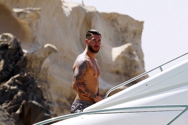Централният бранител на Реал Мадрид Серхио Рамос прекарва последни дни от лятната си почивка на балеарския остров Ибиса. Британският таблоид "Дейли Мейл" публикува снимки от ваканцията на 29-годишния бранител, който все още не знае къде ще играе след месец.