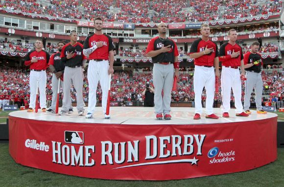 Любимецът на местната публика Тод Фрейзиър спечели хоумрън дербито преди Мача на звездите в МЛБ и взриви фойерверките на ст. "Грейт Америкън" в Синсинати. Във финалния кръг тази нощ третият бейзмен на Синсинати Редс надстреля новобранеца на Лос Анджелис Доджърс Джок Пидърсън с 15:14.