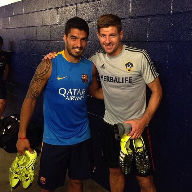 Английският капитан на мърсисайдци, който напусна своя роден клуб след 17-годишна вярна служба и уругвайският нападател играха заедно в Ливърпул от 2011 до 2014 година, формирайки изключително силна връзка помежду си. Двамата не спряха да поддържат приятелски взаимоотношения и след трансфера на Суарес в Барселона през миналото лято.