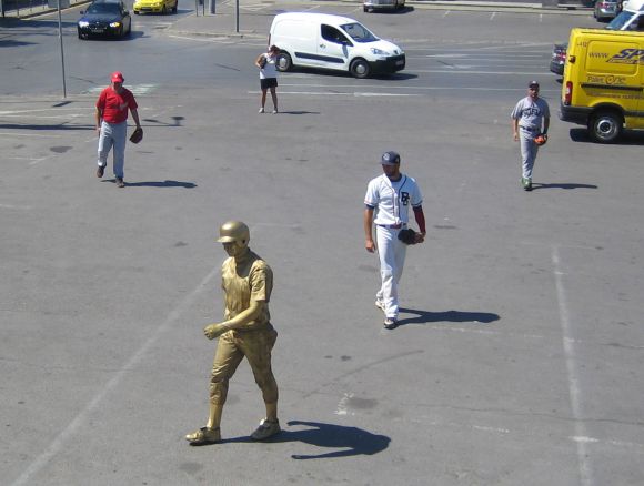 Имаше и жива бейзболна "статуя", която първоначално зае мястото върху празния постамент пред Националния стадион, а после се включи в импровизиран мач без топка на паркинга. След това със скандирания "Къде да спортуваме?" и "Върнете ни стадиона!" колоритната група се пренесе пред сградата на ММС с надежда да изложи исканията си лично пред Красен Кралев. Оказа се обаче, че точно в този ден министърът на младежта и спорта е излязъл в годишния си отпуск.