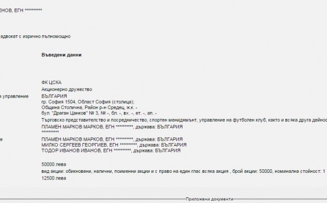 Гриша Ганчев регистрира нов ЦСКА вчера, показва справка в Търговския регистър. Дружеството се казва ФК ЦСКА, като 70% от капитала са в ловешкия бизнесмен. Другите са на "Тера Ностра България".