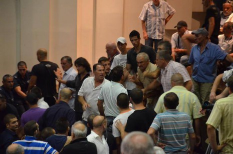 Феновете в залата обаче реагираха остро на думите на Станев, а един от тях го нарече „мошеник“ и отиде да се кара лично с него. Конфликтът беше избегнат за момент, но минута по-късно избухна караница между спартаклии и Иван Петров. Стигна се до бутане и физически сблъсъци, прекратени от полицията. Сесията беше прекъсната докато се успокоят страстите.
