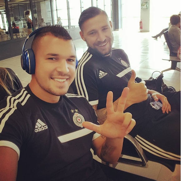 Валери Божинов e приготвил "тайно оръжие" за БАТЕ Борисов. Българският нападател на Партизан се появи с брандирани очила на клубния си отбор преди заминаването на "гробарите" за Беларус. Божинов демонстрира, че е в отлично настроение, публикувайки снимка с интересния аксесоар в "Инстаграм". Заедно с него пред обектива позира и другият българин в сръбския гранд - Иван Бандаловски, който също се очаква да започне титуляр срещу БАТЕ.