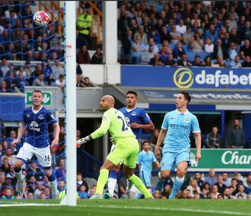 Пред вратата на Тим Хауърд също бе напечено, като Манчестър Сити демонстрира познатата от началото на сезона бърза игра пред наказателното поле на съперника, но Рахим Стърлинг не успя да прати топката в опразнената врата след пас на Давид Силва. Младият нападател на "гражданите", привлечен през това лято за 49 милиона паунда от Ливърпул, подложи десния си крак към топката в ситуация, в която трябваше да опита да я прати в мрежата с левия.