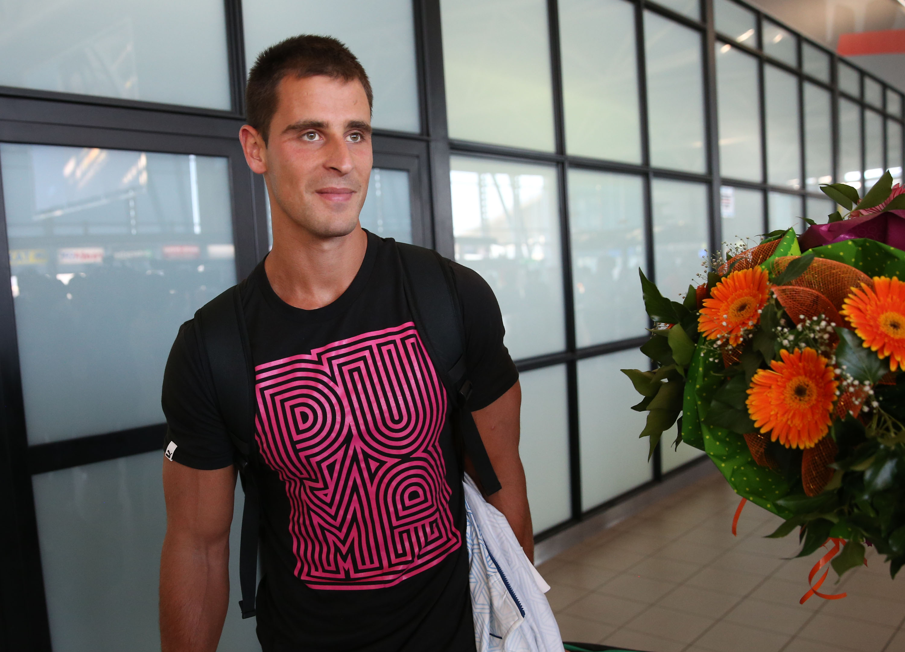 Спечелилият олимпийска квота за Рио на 1000 метра едноместен каяк Мирослав Кирчев също пристигна в добро настроение в София.