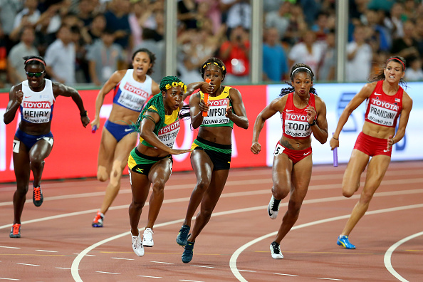 Ямайка триумфира в щафетата 4 по 100 метра за жени на световното първенство по лека атлетика в Пекин. Щафетата на Ямайка в състав Вероника Кембъл-Браун, Наташа Морисън, Илейн Томпсън и голямата звезда на отбора Шели-Ан Фрейзър-Прайс спечели с рекорд на световните първенства - 41.07 секунди. На втора позиция завърши щафетата на САЩ (Инглиш Гарднър, Алисън Филикс, Джена Прандини и Джасмин Тод) с резултат 41.68 секунди - рекорд на тима за сезона, а трети се нареди квартетът на Тринидад и Тобаго (Кели-Ан Баптист, Мишел-Лий Айе, Реяре Томас и Семой Хакет) с 42.03 секунди - национален рекорд. Национален рекорд поставиха и британките, но тяхното време - 42.10 секунди, не им стигна за място на подиума.