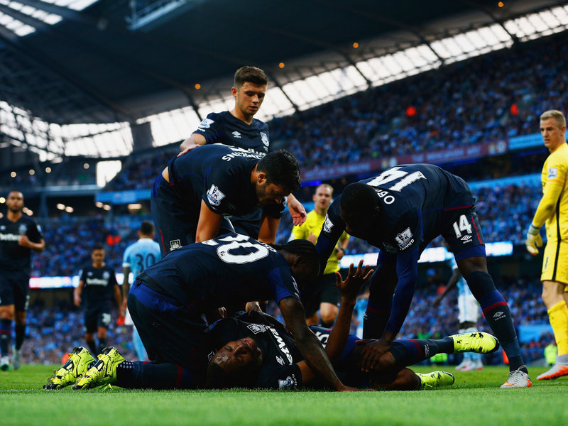 Лидерът в класирането на английската Висша лига Манчестър Сити допусна изненадващо първо поражение в шестия кръг от сезона. Възпитаниците на Мануел Пелегрини, които до момента водеха убедително в класирането и дори не бяха допуснали гол в първите си пет мача от сезона, загубиха с 1:2 домакинството си на Уест Хам. "Чуковете" пък от своя страна записаха поредното си феноменално представяне далеч от дома. След победите над Арсенал (2:0) и Ливърпул (3:0) като гост, отборът на Славен Билич постигна трета поредна победа като гост на един от основните претенденти за титлата от Висшата лига. Виктор Моузес и Диафра Сако дадоха солиден аванс на лондончани в първия половин час от срещата, а Кевин де Бройне с първия си гол за "гражданите" намали. След почивката обаче домакините така и не успяха да преодолеят за втори път Адриан и трябваше да се примирят с първото си поражение за сезона.