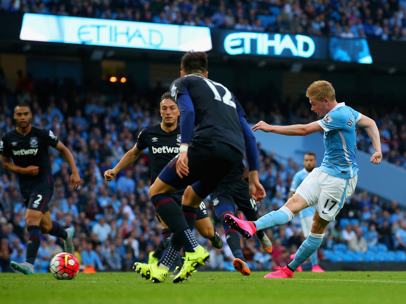 Домакините успяха да намалят изоставането си точно преди края на първото полувреме. Кевин де Бройне отбеляза първото си попадение с екипа на Ман Сити по особено красив начин. Серхио Агуеро подаде на белгиеца, който с удар извън наказателното поле простреля Адриан дел Кастийо.