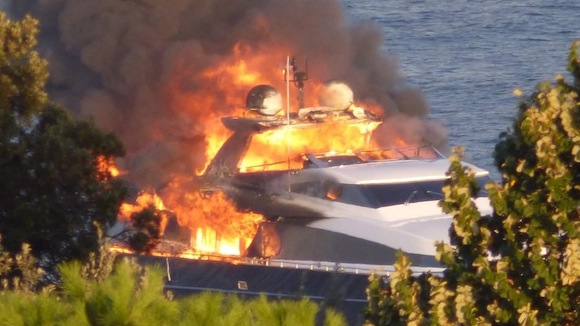 Едно от първите видеа с горящата яхта, която Де Лаурентис закупи през март тази година, беше разпространено от бившия капитан на италианския национален отбор Фабио Канаваро в профила в му в Instagram.