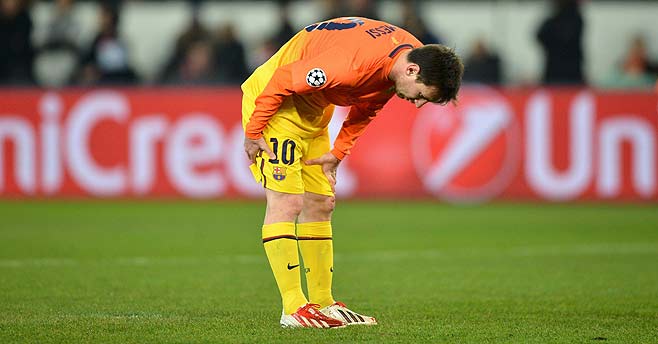 На 2 април 2013 г. например на „Парк де Пренс” получи малко разкъсване на бедрен мускул на десния крак по време на първия четвъртфинален мач от ШЛ с ПСЖ. Седмица по-късно игра последния половин час в реванша на „Камп Ноу”. Разхождаше се, ала самото му присъствие раздруса французите: асистира на Педро за изравнителния гол и Барса стигна полуфиналите. Полуготов, игра в първата среща с Байерн (Мюнхен), когато отборът на Юп Хайнкес прегази този на Тито Виланова с 4:0. Неузнаваем, Бълхата бе унизена сянка на самия себе си и заедно с него такъв бе и целият тим, потънал в депресията от бенефисното присъствие на своя ас. На реванша бе на пейката и Барса на Тито пак падна убедително (0:3). Вече доста време играта на тима не се връзваше без Меси и онази вечер на „Камп Ноу” остави огромен отпечатък.