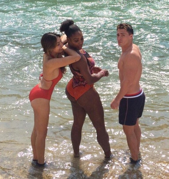 34-годишната Серина показа завидните си форми на плажа в Тексас, а компания й правеха нейна приятелка и изявяващият се като модел и актьор Колтън Хейнс.