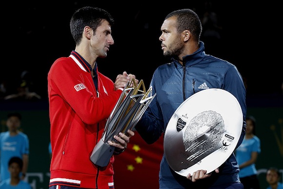 Световният №1 Новак Джокович грабна титла №57 в кариерата си, №25 от категорията "Мастърс" и №9 за сезона. 28-годишният сърбин стана за трети път шампион на турнира от серията "Мастърс" в Шанхай. На финала Ноле срази поставения под №16 в схемата Жо-Вилфред Цонга с 6:2, 6:4 за 78 минути и записа 14-а победа от 20 мача срещу французина. Джокович вече е само на 2 титли от рекорда на Рафаел Надал, който е тенисистът с най-много "Мастърс" трофеи - 27.