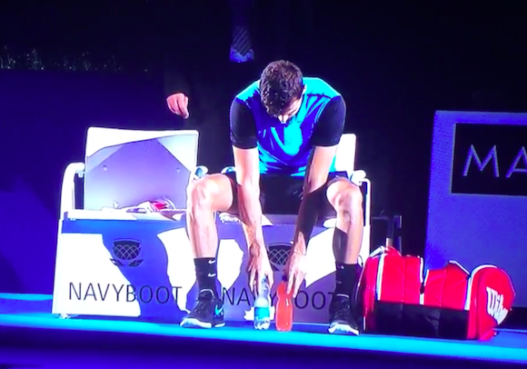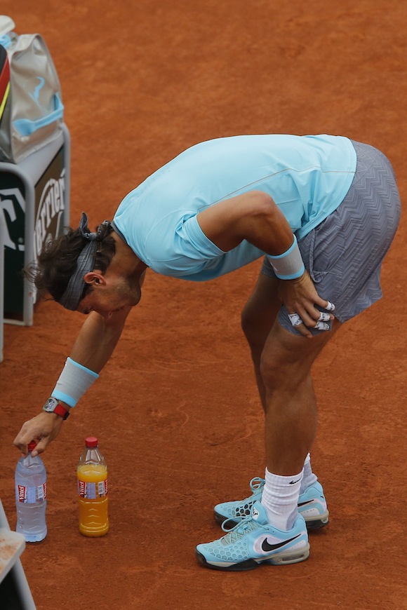 Двамата показаха освен това и завидни футболни умения с малките тенис топки. Гришо прати с шут кълбето към Рафа, който без проблеми с пета спря топката и я прати на своята ракета. Малко по-късно в мача разиграването беше повторено, но в обратен ред.