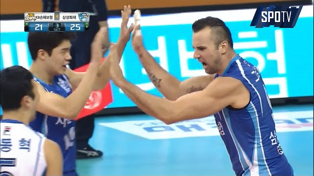 Звездата на националния отбор на Германия Георг Гроцер продължава с отличното си представяне в шампионата ан Република Корея. След като преди няколко дена роденият в Унгария диагонал заби 42 точки за победа на своя Самсунг Блуфенгс с 3:2, сега Гроцер разби противниковия тим с нови 48 точки за успех над КБ Иншурънс Старс с 3:1 (27:29, 25:21, 25:21, 25:21) в мач от 6-ия кръг.