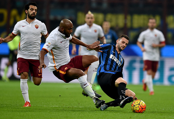Първата по-сериозна запраха за някоя от двете врати беше в 15-ата минута, когато босненският нападател на Рома Един Джеко опита удар с глава след центриране толяво на френския ляв бек Люка Дин, но Ханданович показа отличен рефлекс и изби. Отговорът на "нерадзурите" дойде секунди по-късно, когато хърватският полузащитник Марсело Брозович центрира опасно отдясно, но не се намери кой да насочи топката във вратата на полския страж Войчех Шчесни. ![]()
