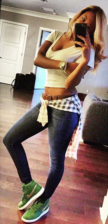 Вчера голямата дъщеря на Джордан – 22-годишната Жасмин публикува свое селфи в "Инстаграм". Това, което обаче привлича вниманието са нейните кецове.