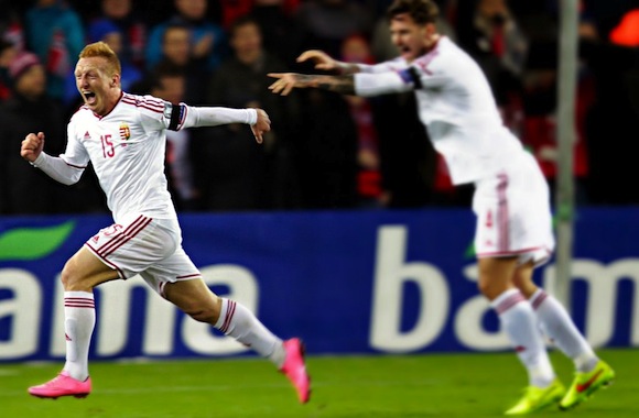 Унгария победи с 1:0 Норвегия като гост в първия от баражите за Евро 2016. Гола за гостите вкара дебютантът Ласло Клайхайстер в 26-ата минута. По този начин съставът на Бернд Щорк направи голяма крачка към първото си класиране на финали на голямо първенство от 30 години насам. Норвежците бяха по-активният отбор в студената вечер в Осло, но пропуснаха няколко чисти положения, а в 88-ата минута гредата им попречеи поне да изравнят.