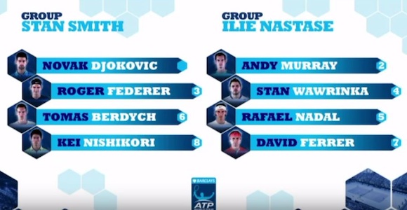 Тази вечер беше изтеглен жребият за групите на заключителния "Мастърс", който ще се състои между 15 и 22 ноември в Лондон. В група "Стан Смит" се събраха водачът в световната ранглиста Новак Джокович, Роджър Федерер, Томаш Бердих и Кей Нишикори. Съперници в група "Илие Настасе" са Анди Мъри, Стан Вавринка, Рафаел Надал и Давид Ферер.