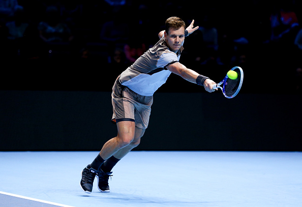 Японецът Кей Нишикори постигна първа победа на финалния турнир на АТP в Лондон с награден фонд 7 милиона долара. Поставеният под номер 8 Нишикори надделя над шестия в схемата Томаш Бердих (Чехия) със 7:5, 3:6, 6:3 след 2:23 часа игра. Азиатецът спечели първия сет с единствен пробив в 11-ия гейм, а след това поведе с 2:0 във втората част, когато Бердих се разигра. С поредица от пет гейма чехът обърна до 5:2 и без проблеми затвори втория сет. Третата част вървеше равностойно, но в осмия гейм две леки грешки от форхенд на Бердих подариха пробив на съперника, от което Нишикори се възползва и веднага след това затвори мача при собственото си подаване.